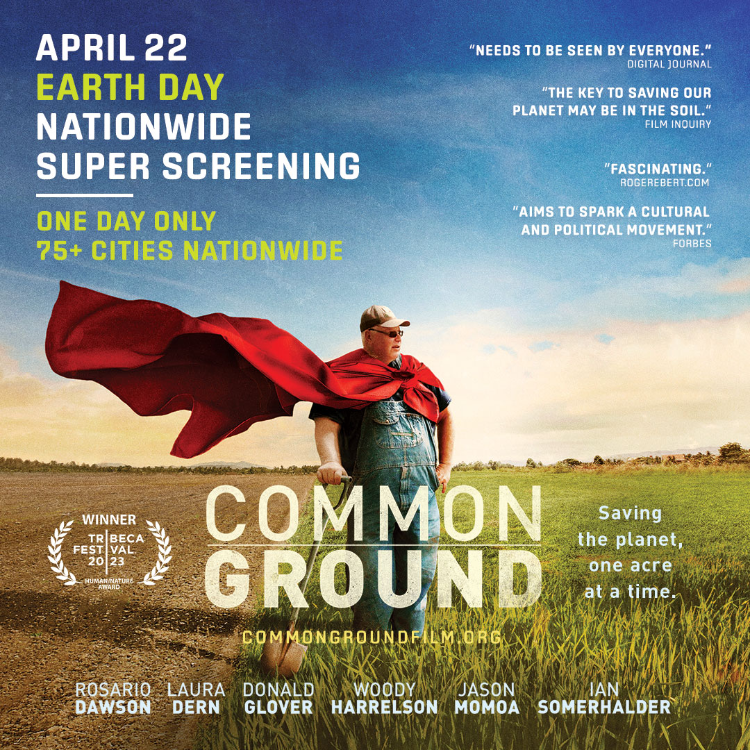 - Watch and Learn from “Common Ground”: Make plans to attend a screening of “Common Ground” on Earth Day. This documentary is more than a film; it’s a catalyst for change, illustrating the critical role of regenerative agriculture in healing our planet. By understanding the issues and solutions presented, you become part of a larger movement towards sustainability.